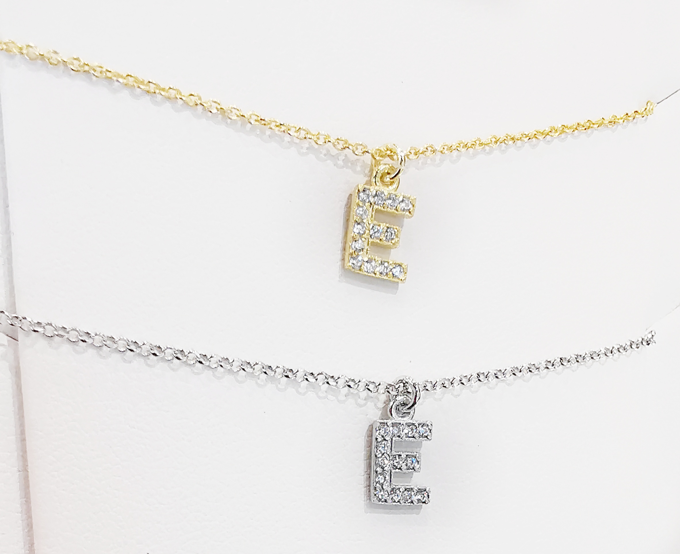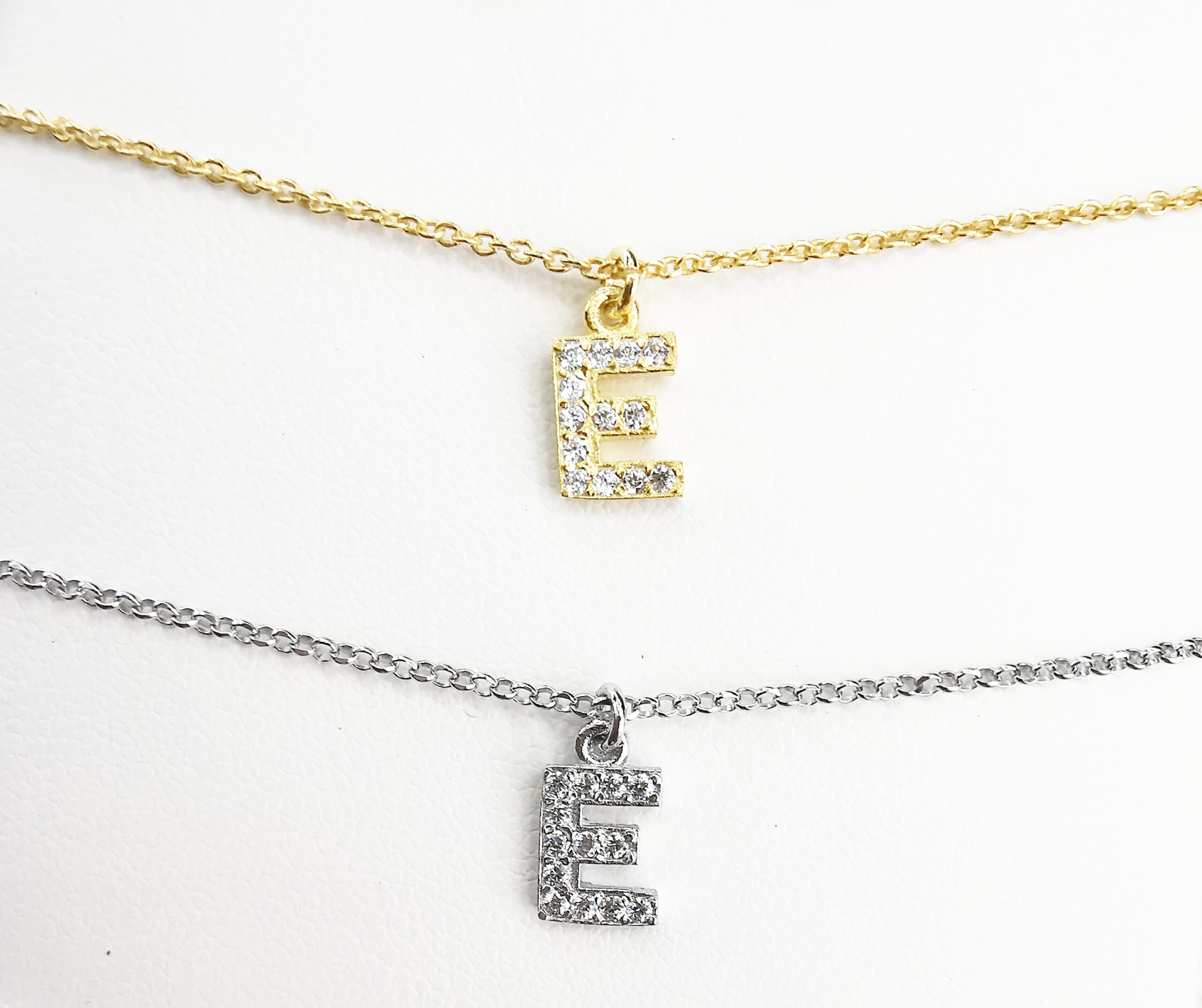 Λεπτεπίλεπτο μενταγιόν μονόγραμμα Ε δημιουργημένο από ασήμι 925ο ή επιχρυσωμένο ασήμι 925ο με ζιργκόν. Για να δείτε λεπτομερώς το μενταγιόν πατήστε πάνω στην φωτογραφία.