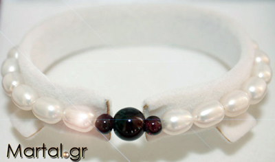 Το μαργαριταρένιο βραχιόλι Garnet ανήκει σε αυτή τη συλλογή και δίνει μία νέα μοντέρνα πνοή στα μαργαριταρένια κοσμήματα.