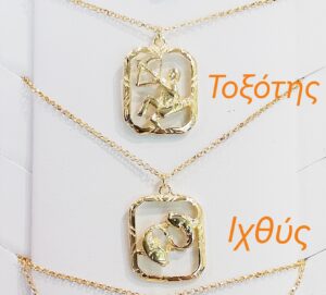 Η αλυσίδα που συνοδεύει τα μενταγιόν είναι επίσης από επιχρυσωμένο ασήμι και έχει μήκος 45 εκατοστά.