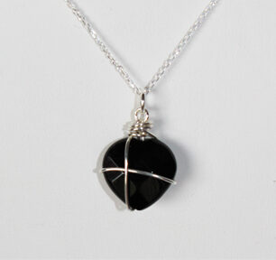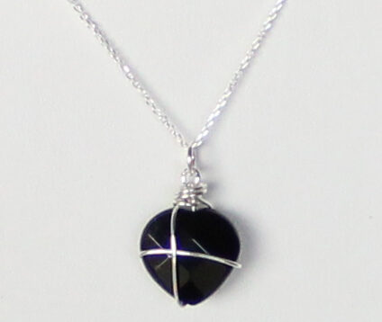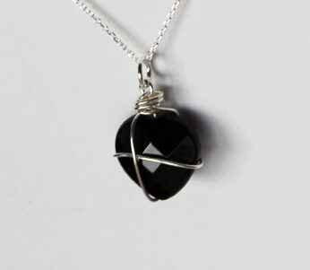Εξαίσιο χειροποίητο μενταγιόν καρδιά από τον ημιπολύτιμο λίθο μαύρο όνυχα δεμένο με ασήμι 925o !!!