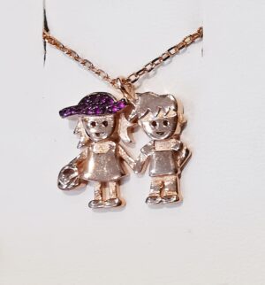 Πανέμορφο μενταγιόν κορίτσι και αγόρι ή αλλιώς μενταγιόν τα παιδιά μου που δημιουργημένο εξ ολοκλήρου από ασήμι 925. Οι λίθοι του μενταγιόν είναι φυσικά ρουμπίνια.