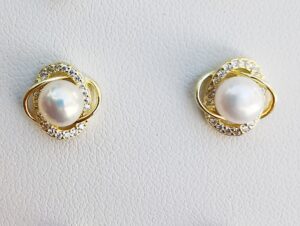 ♥Εντυπωσιακά και λαμπερά σκουλαρίκια κ με πραγματικά μαργαριτάρια freshwater, ζιργκόν ποιότητος και ασήμι 925ο.